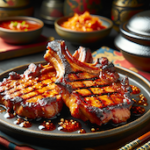 In a medium size bowl whisk together the soy sauce, honey, garlic, ginger, sesame oil and sriracha sauce. Pour over pork chops and let marinade for about 20 minutes.